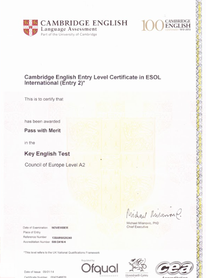Descripción: Es un certificado de nivel intermedio. Certifica que eres capaz de utilizar tu competencia lingüística en inglés para trabajar, estudiar y viajar.