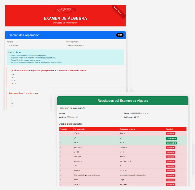Trasformamos el estudio intensivo en un juego de retos: cada módulo es un juego de retos: cada módulo es un nivel a superar. Usamos puntos, insignias y rankings para motivar a los estudiantes en su avance semanal. Esto genra disciplina, motivación y mejores calificaciones en el Examen Único SEp (Acuerdo 286). En Conversa, los alumnos no solo estudian... juegan a ganar su futuro.