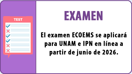En esta sección encontrarás toda la información clave sobre la convocatoria del examen ECOEMS 2026, que será publicada en febrero. Aquí podrás consultar fechas importantes, requisitos y el proceso de inscripción para asegurar tu lugar. Mantente atento a nuestras actualizaciones y prepárate con anticipación para dar este gran paso en tu camino educativo. ¡No dejes pasar la oportunidad de estar informado y listo!
